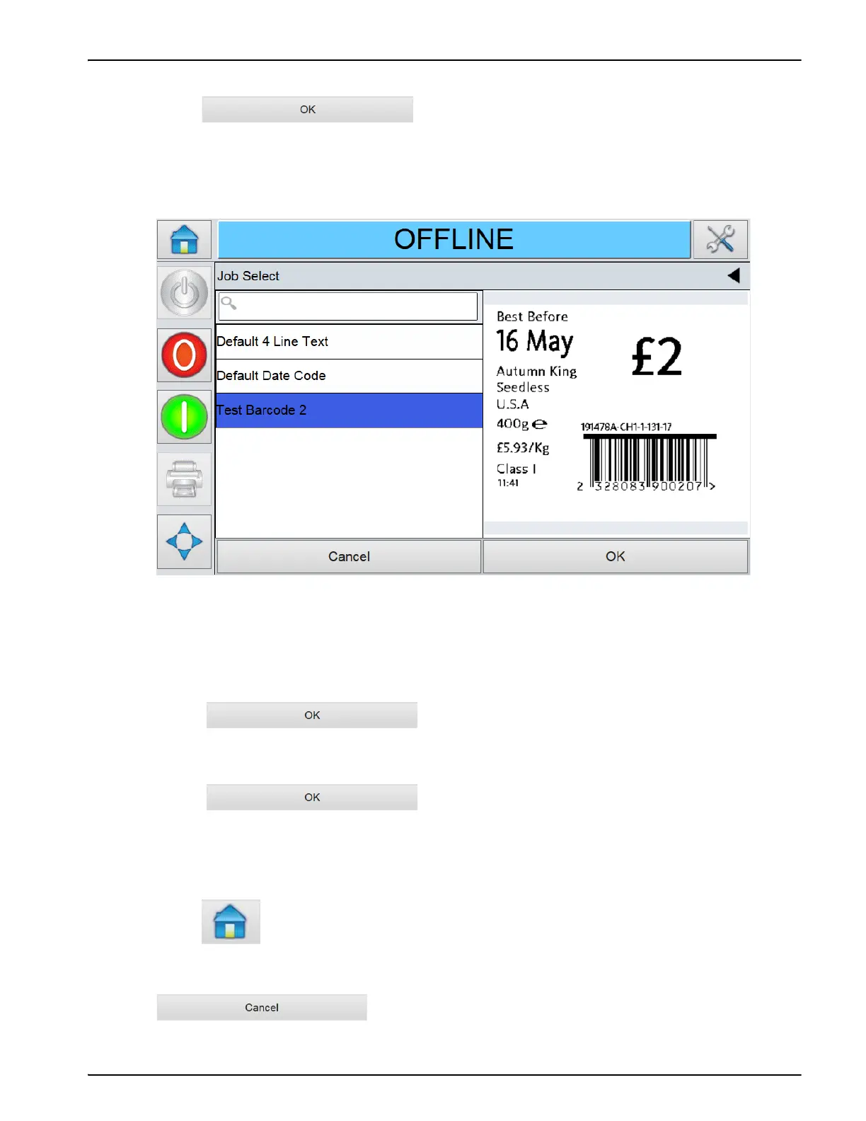 Note: User can select a new image or job while the printer is offline or while it is running. The new job