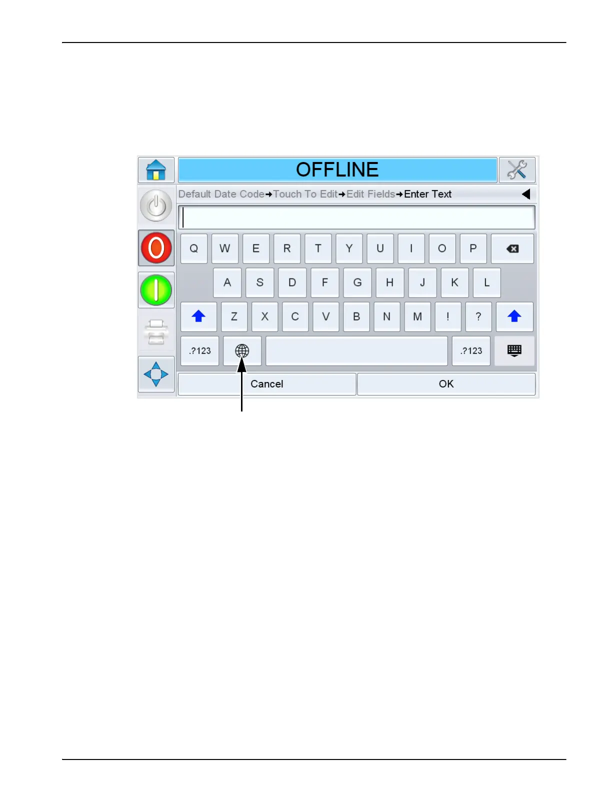 b. Touch the 'Language Selection Key', to access the available language selections (see