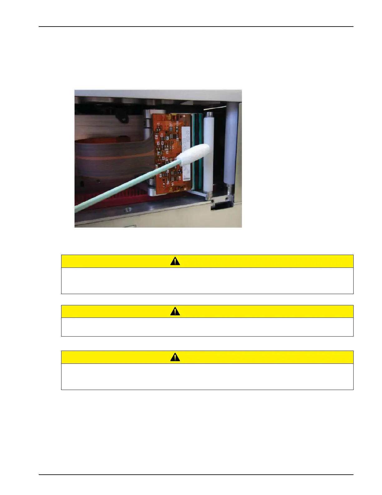 4. Clean the printhead pixel line from top to bottom (Figure 7-1), the white cassette rollers and