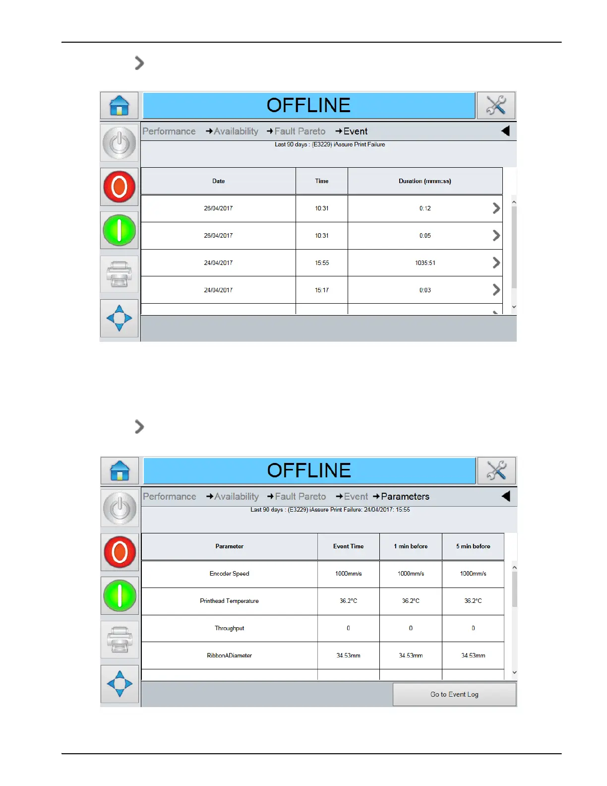 The Event page will show for each fault, the date, time and duration of that fault for the time