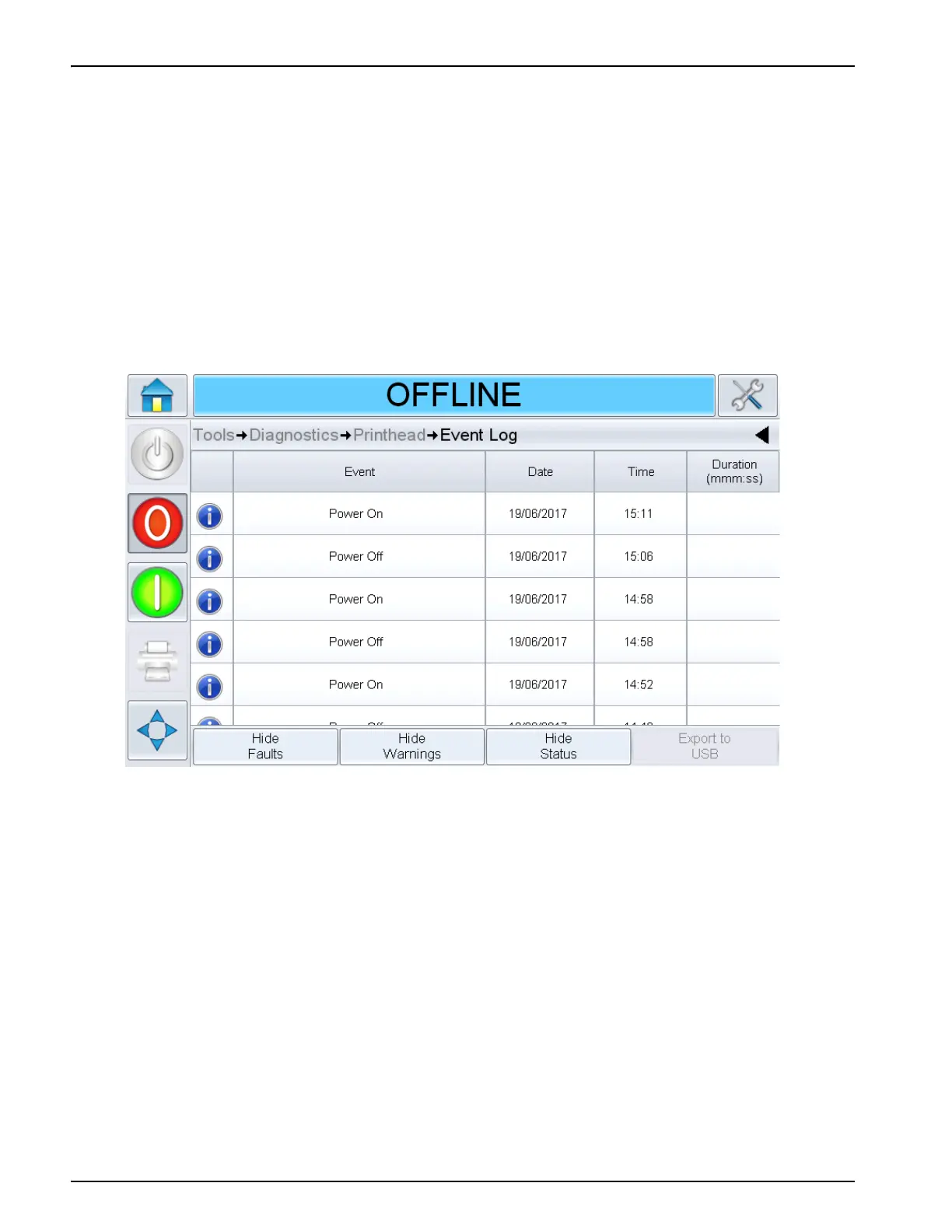 indicators of the equipment. Selecting event log from this page will show the event log for the