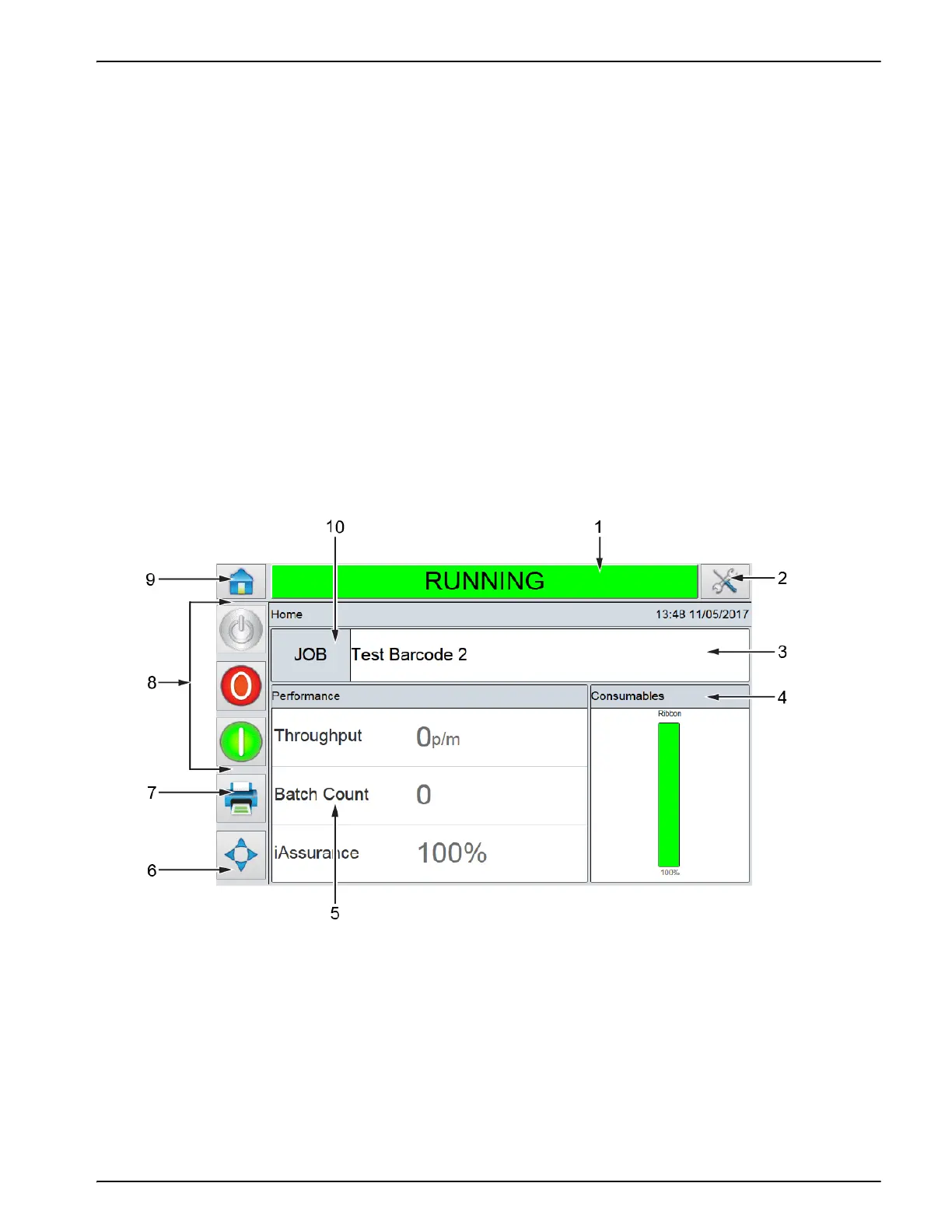 Figure 5-1 shows the Home screen of the CLARiTY operator control system.