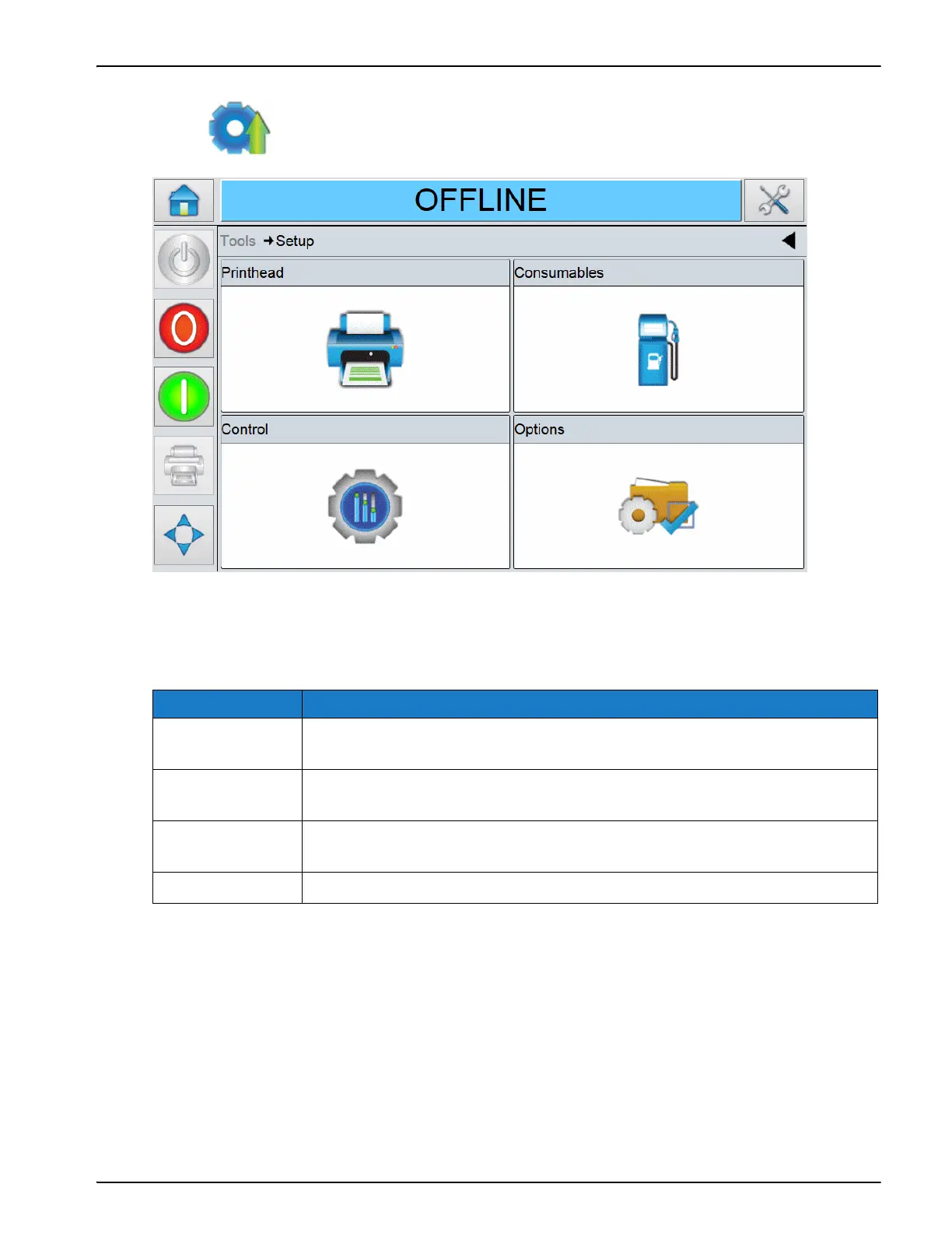 Printhead Sets the basic printhead parameters. Refer to “Using the Printhead