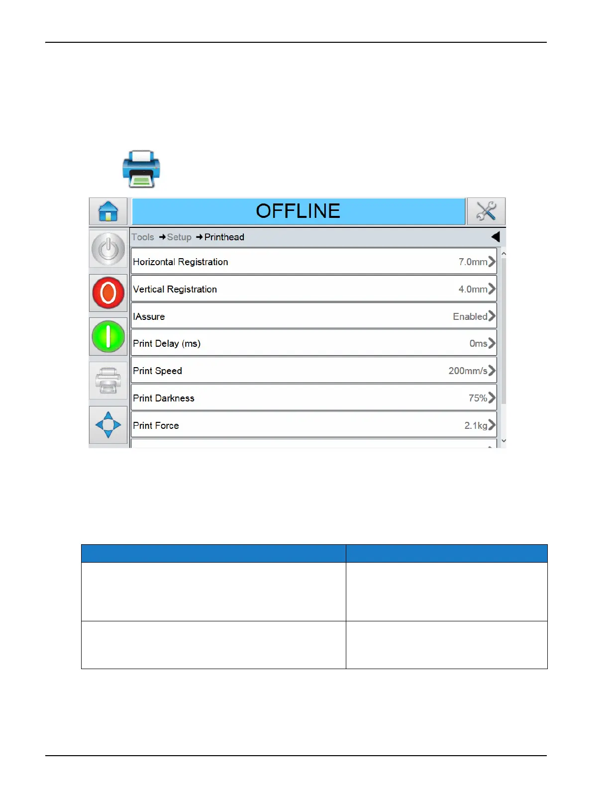 Touch on the Setup screen to access the printhead parameters (Figure 5-4).