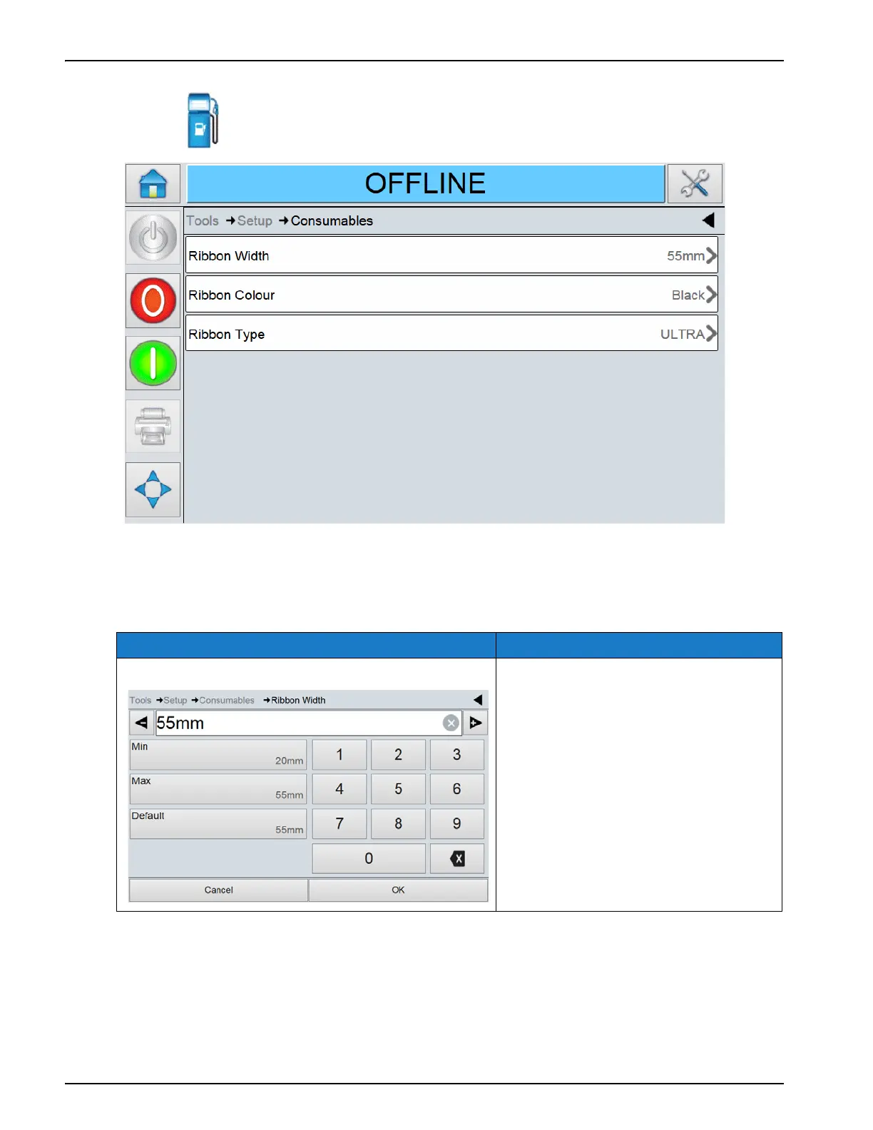 Touch on the Setup screen to access the consumables parameters (Figure 5-6).