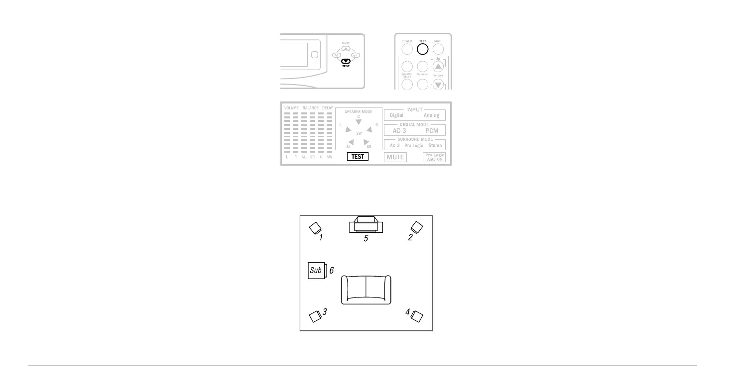 Drücken Sie den Test Knopf am DigiTheatre Decoder oder an der