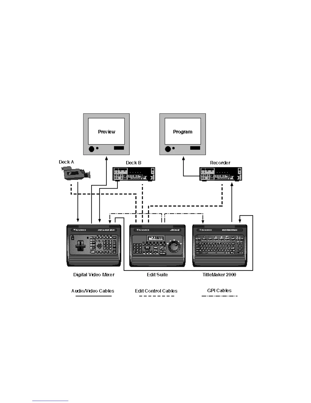This figure shows a fairly typical configuration for Edit Suite. It includes two play sources (Deck A and
