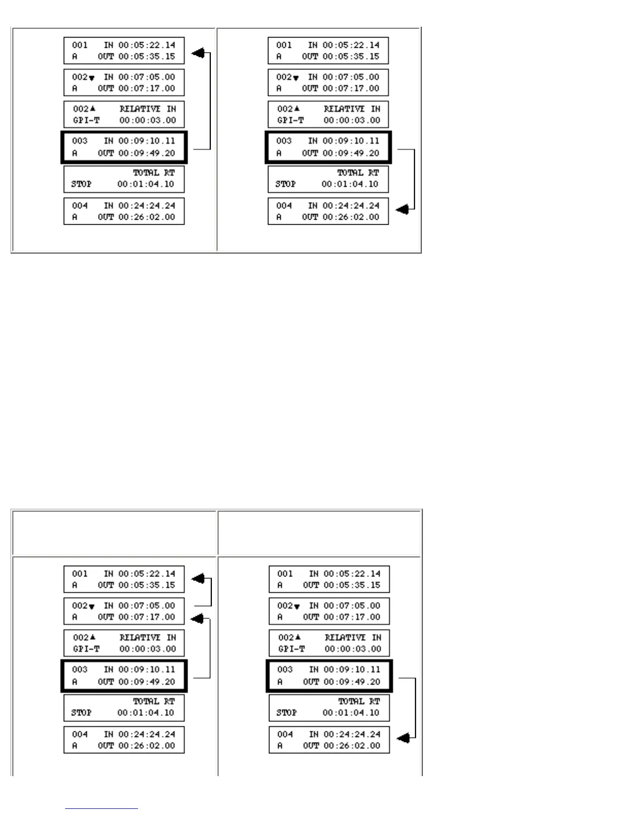 In the preceding example, event 003 is the active event (the event displayed in the LCD) when the GO