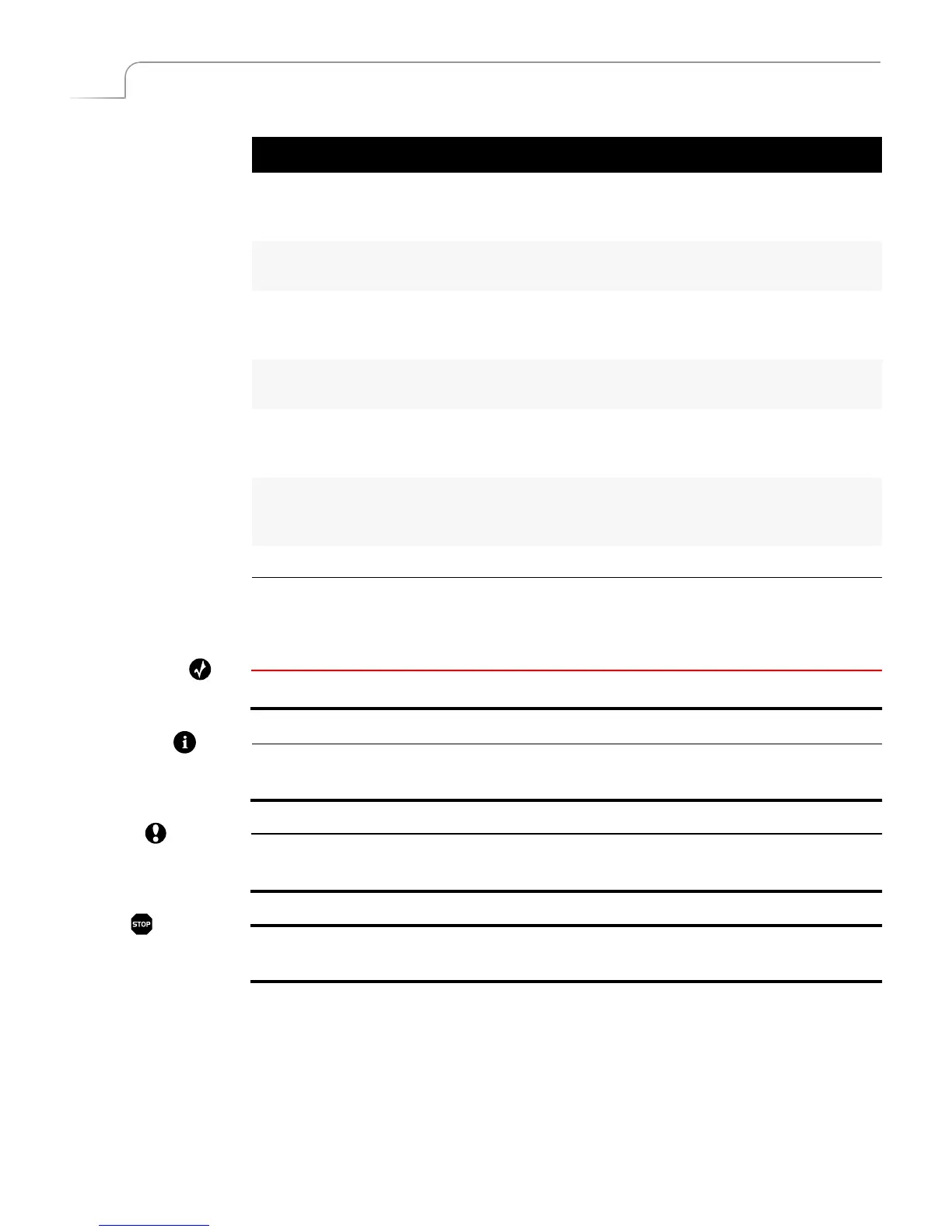 Tips, Notes, Cautions, and Warnings use the following formats.
