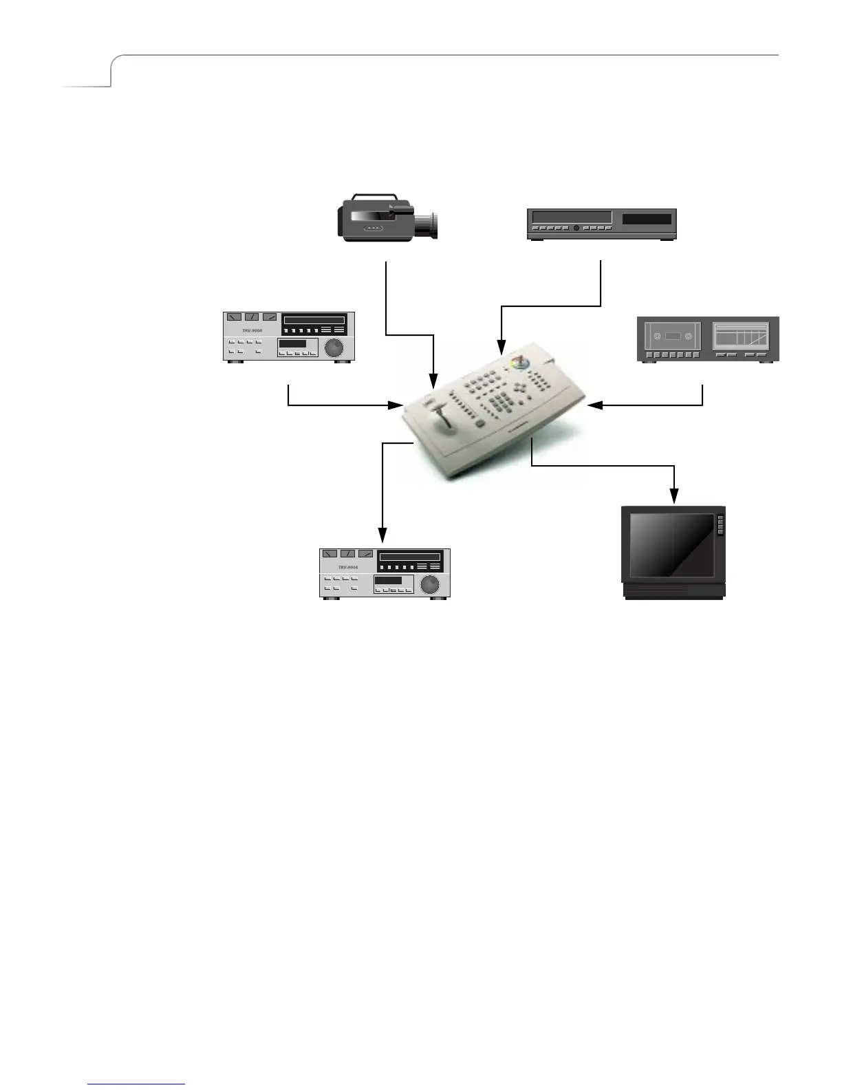into MXPro from one or more of the sources. The output device might be a VCR with an