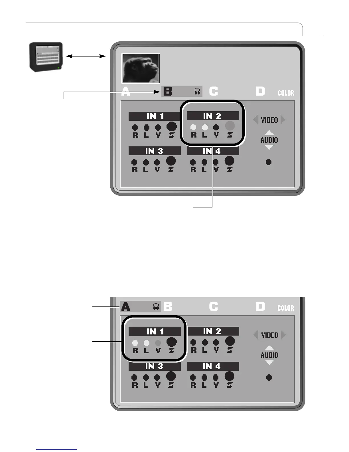 5 Press LEFT ARROW to highlight the V (Composite Video) option in the IN 1