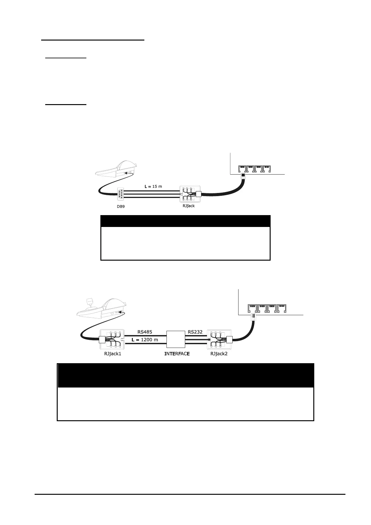 use RS485-RS232 interfaces, which allow a maximum distance between keyboard