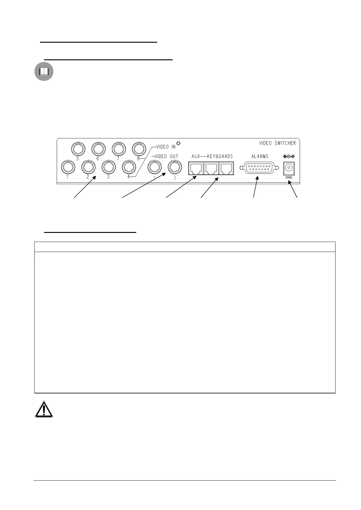 1 x 15 pin connector for connecting alarm contacts, relay contacts, VCR trigger and external alarm reset
