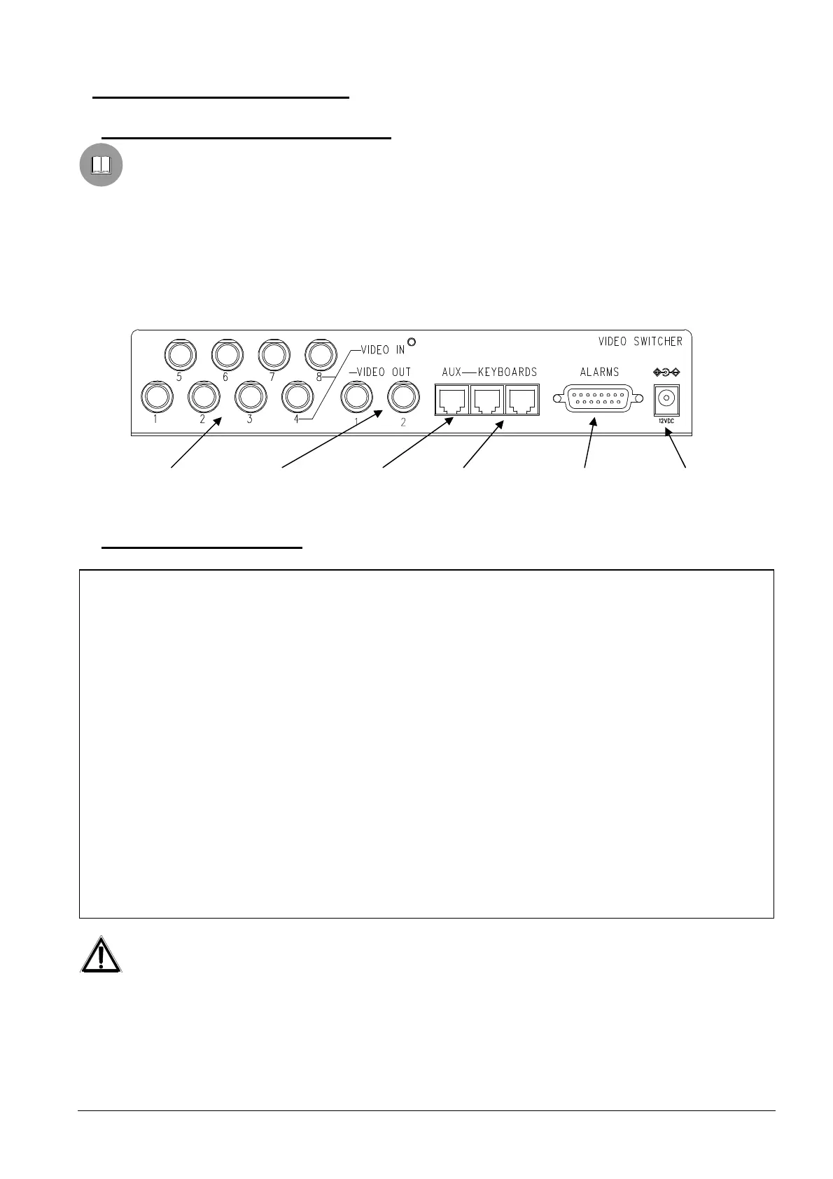 1 connecteur à 15 pôles pour la connexion des contacts d'alarme, du contact relais, du trigger VCR et du
