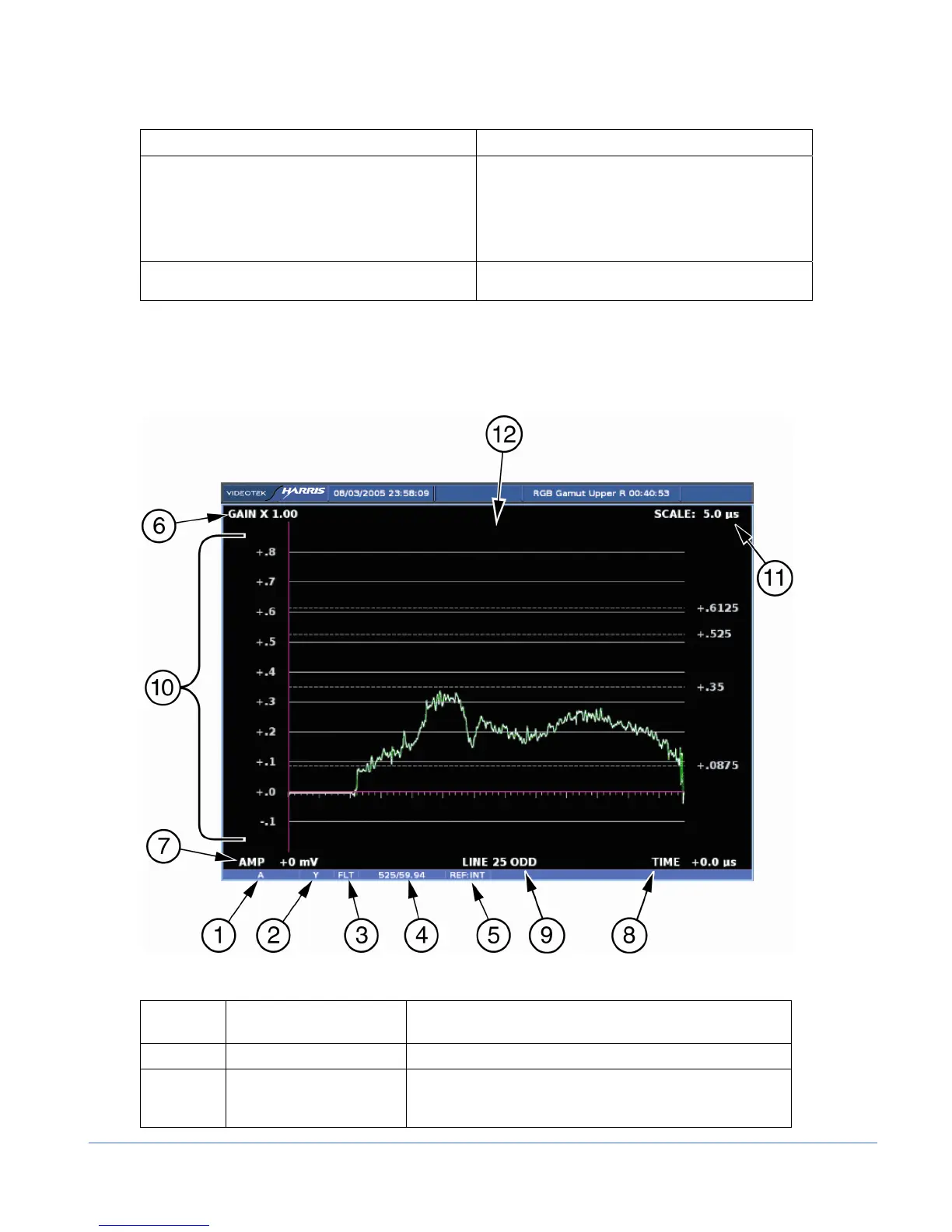 A waveform display is shown in Figure 3-6 and described in Table 3-6. The figure