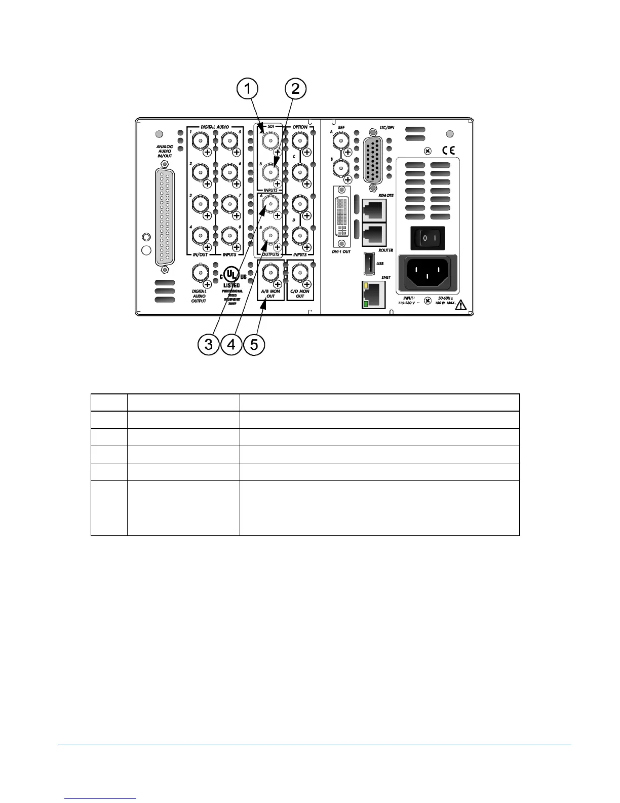 4 B (OUT) Female BNC looping HD-SDI or SD-SDI output connector