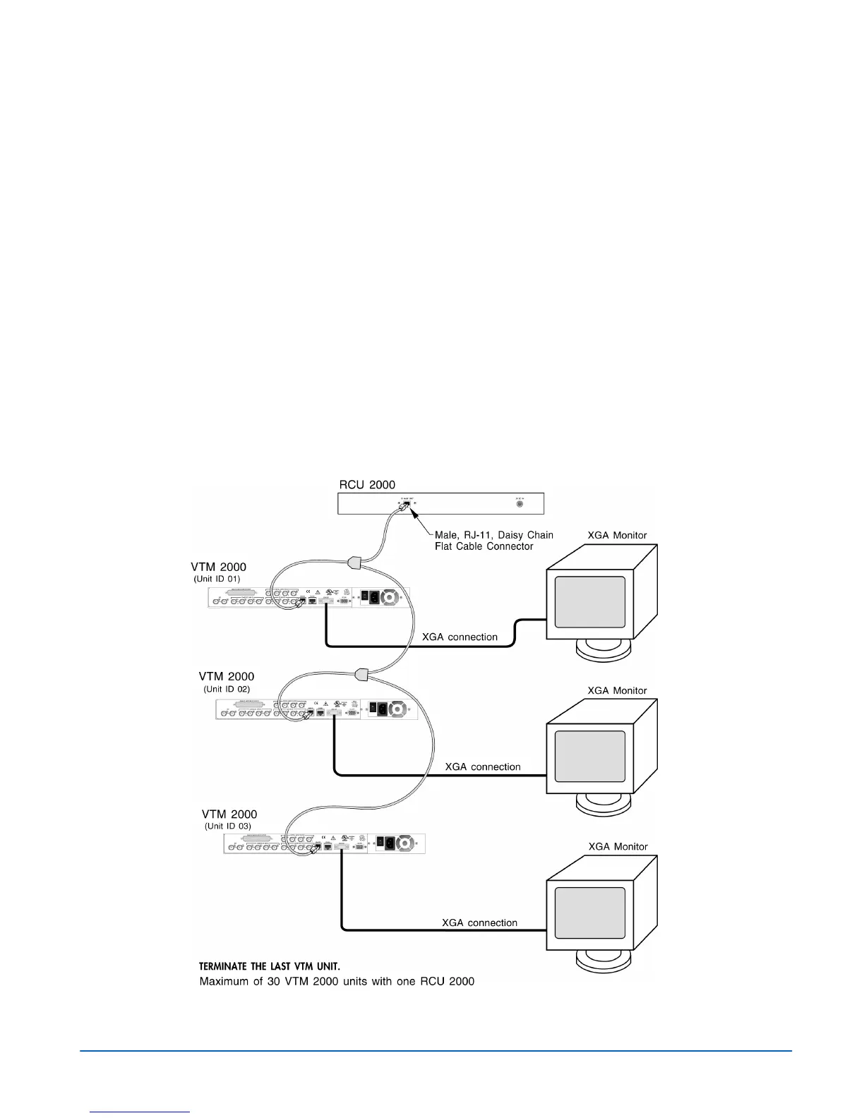 • One RCU-2000 connected to one VTM-2000 unit using the REMOTE port.