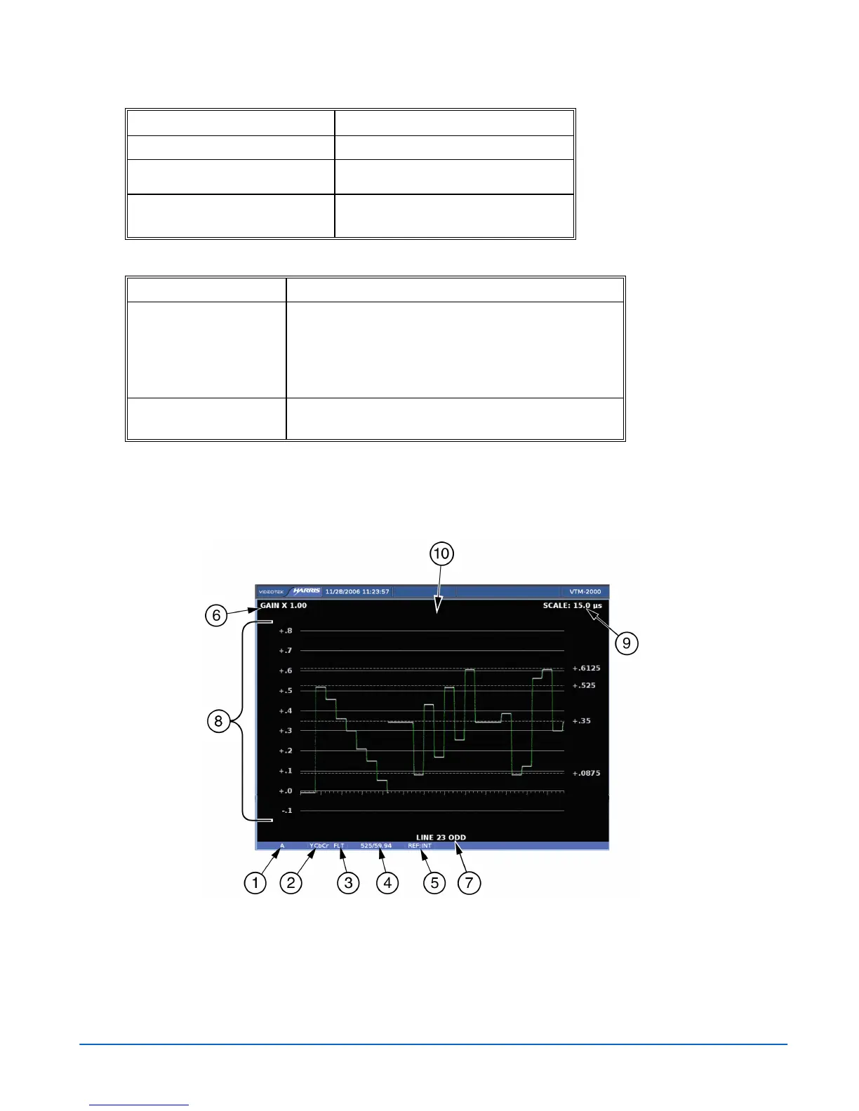 A waveform display is shown in Figure 3-6 and described in Table 3-7. The figure