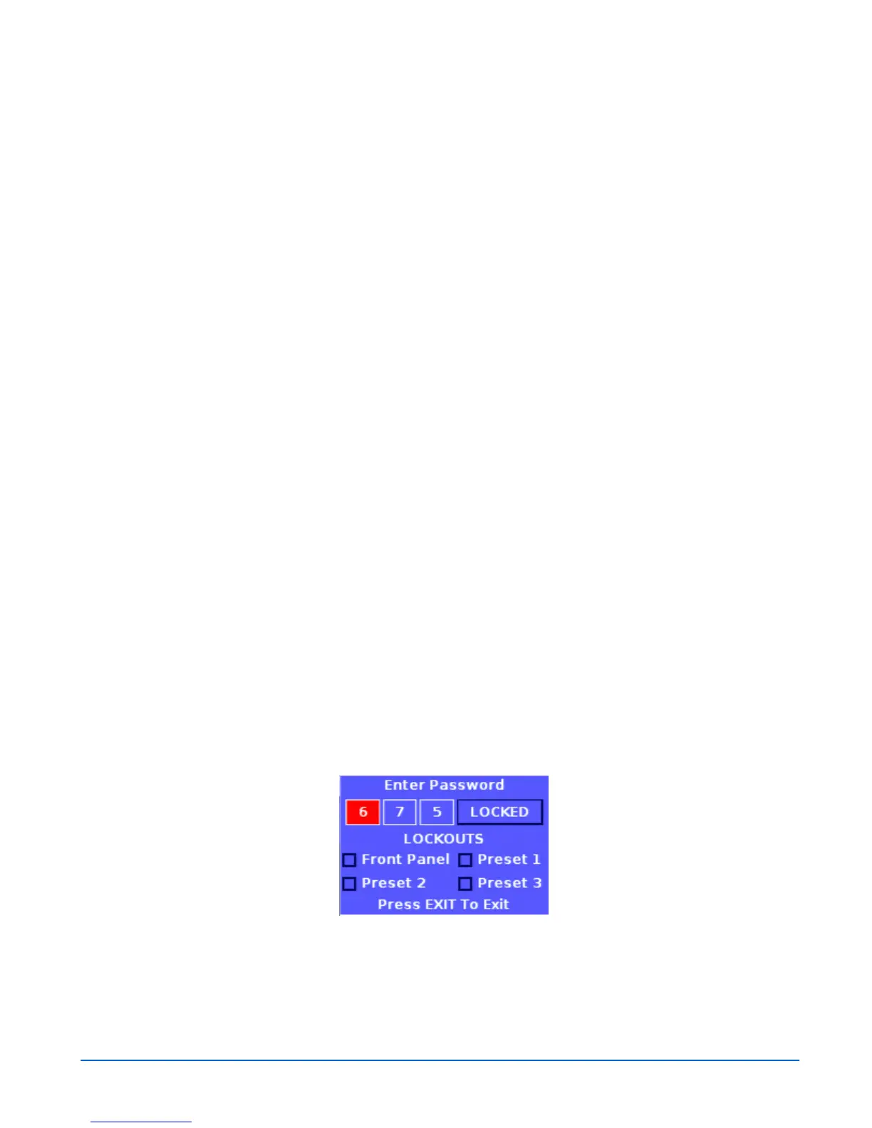 Similar to the Panel Lockout feature, the Preset Lockout is also password protected.