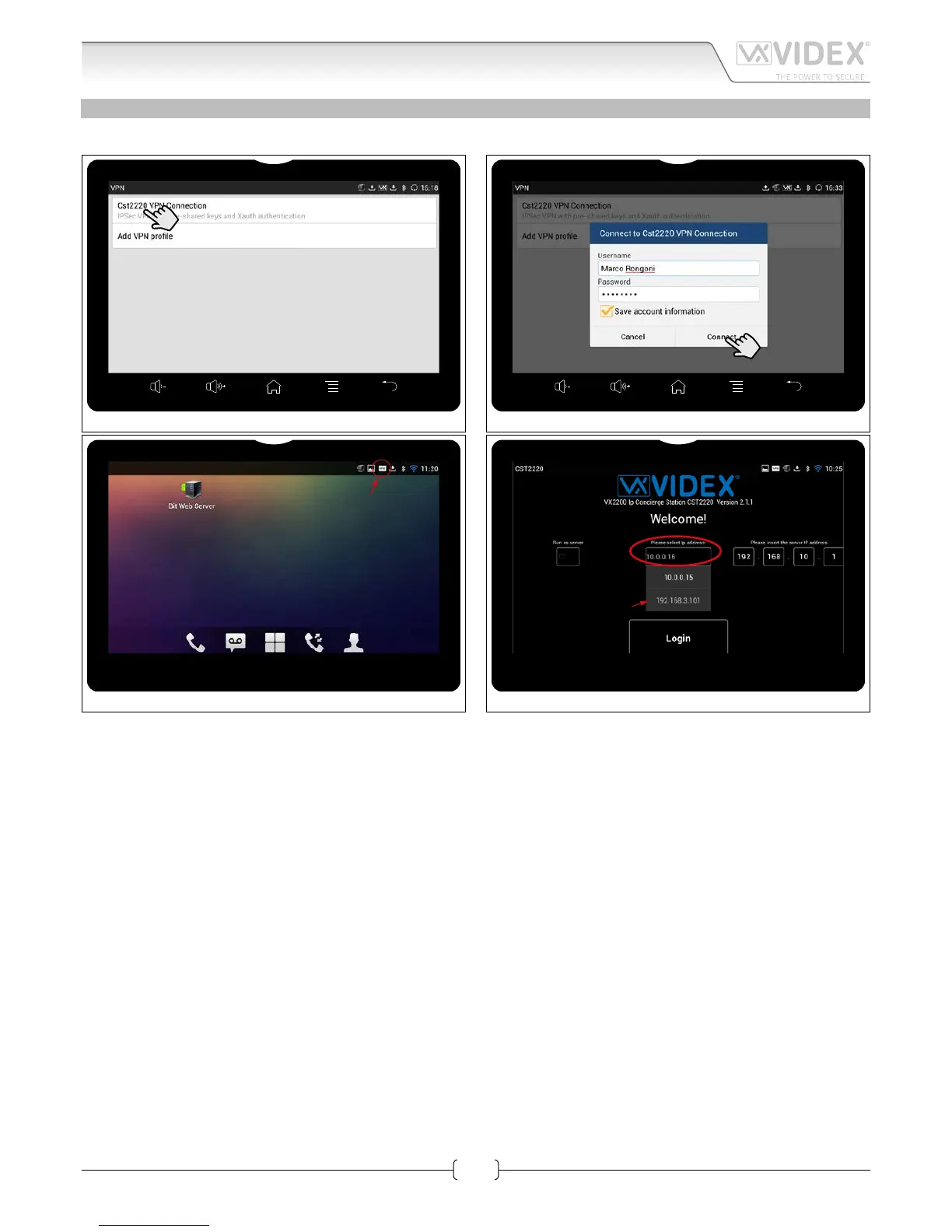 To start a VPN connection, rst follow the steps as shown in gures Fig. 65 on page 17 to Fig. 67 on page 18. Then proceed as