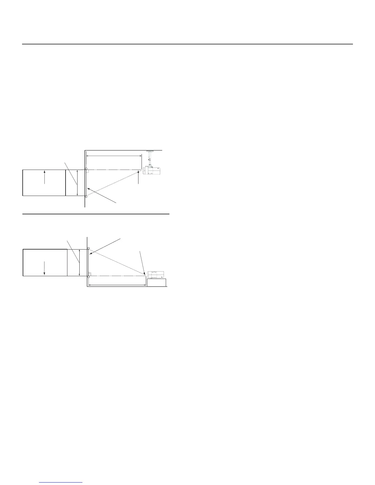 (ceiling-mounted). Likewise, the bottom of the projected image is aligned with the lens