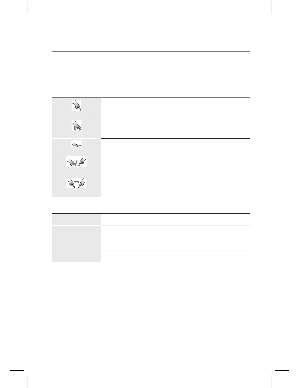 Touch Actions that T3kCfg Touch Sensor Recognizes