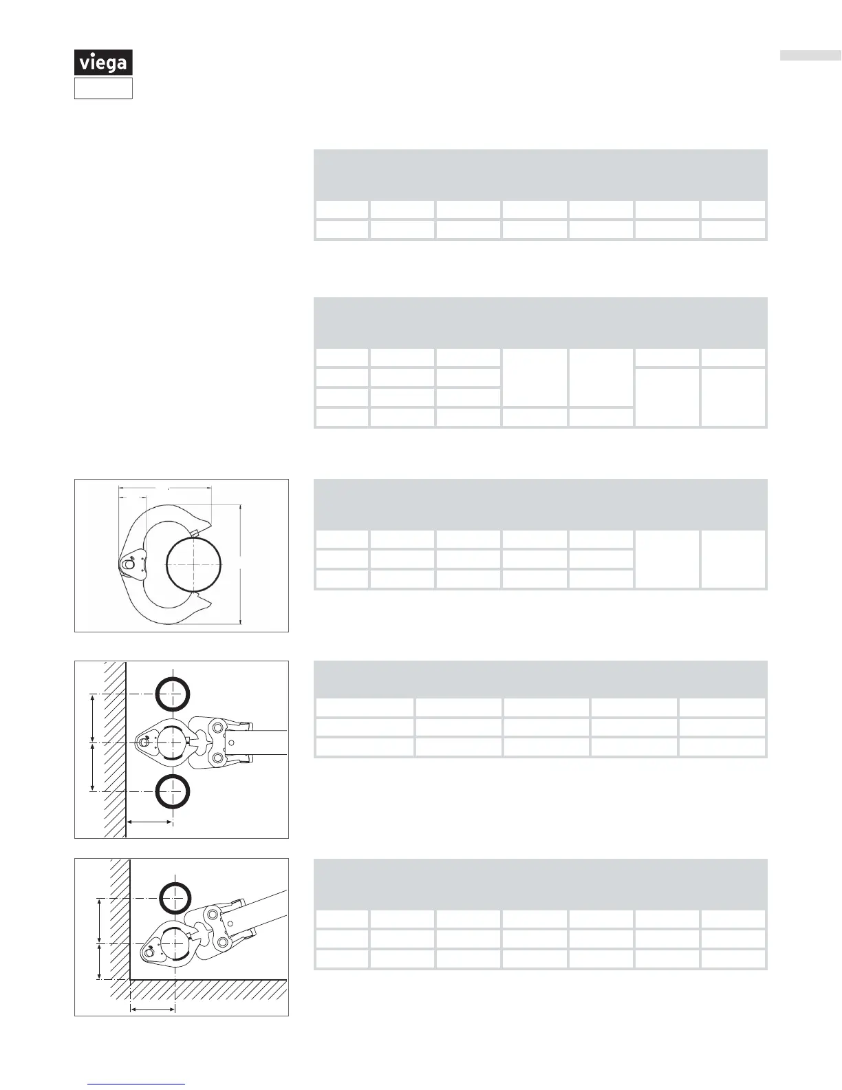 Table 16: ProPress XL-C rings clearance requirements between tube, wall, and oor