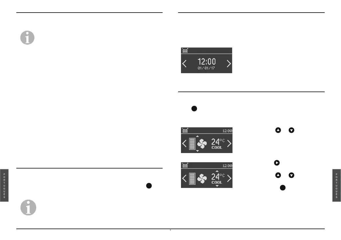 Prima no ecrã principal para ativar a ventilação e o compressor.