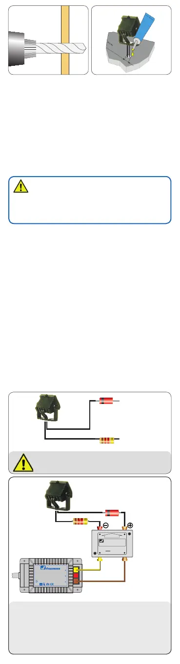 - Am Einbauort ein Loch (Ø 2 mm) zur Montage bohren
