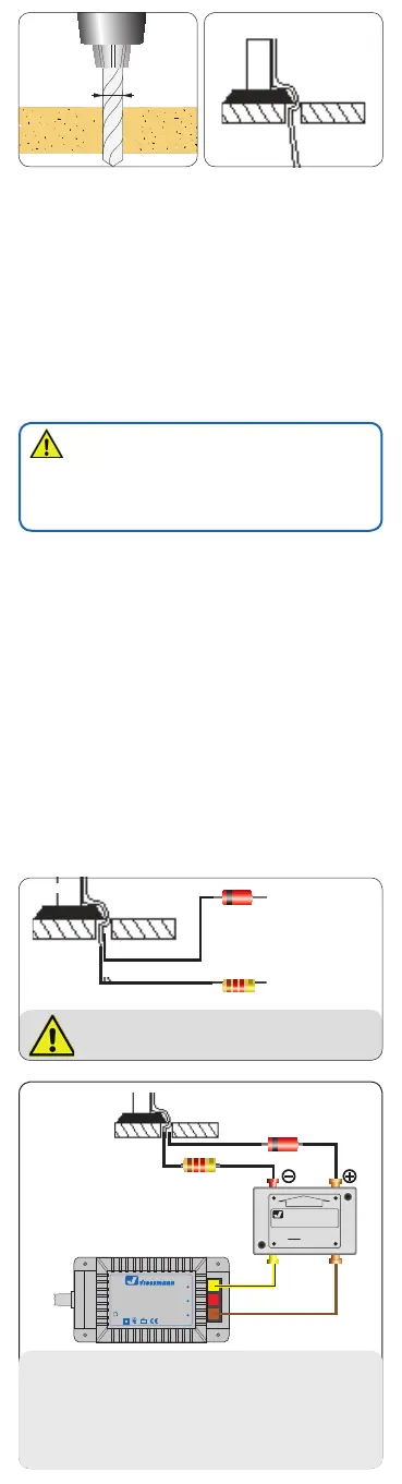 - Am Einbauort ein Loch (Ø 2 mm) zur Montage bohren