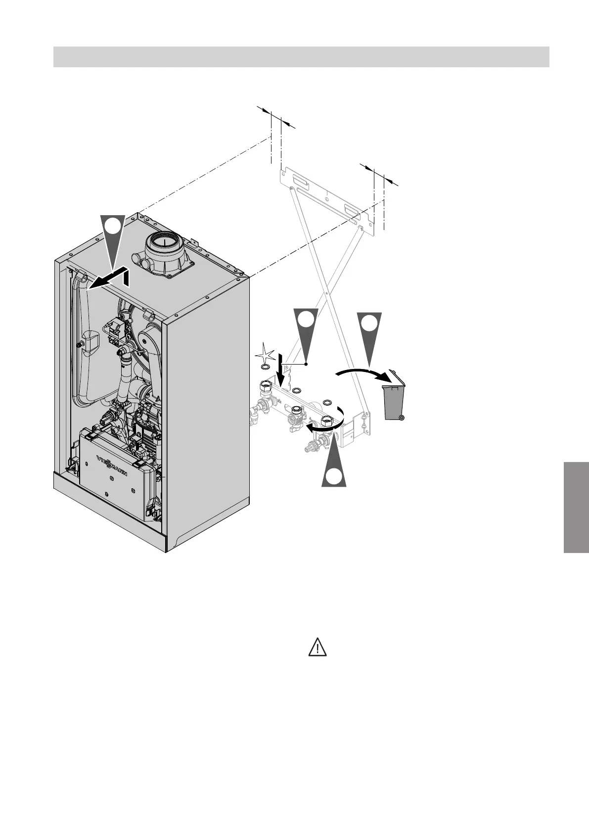 Removing the boiler from the pre-plumbing jig or mounting frame
