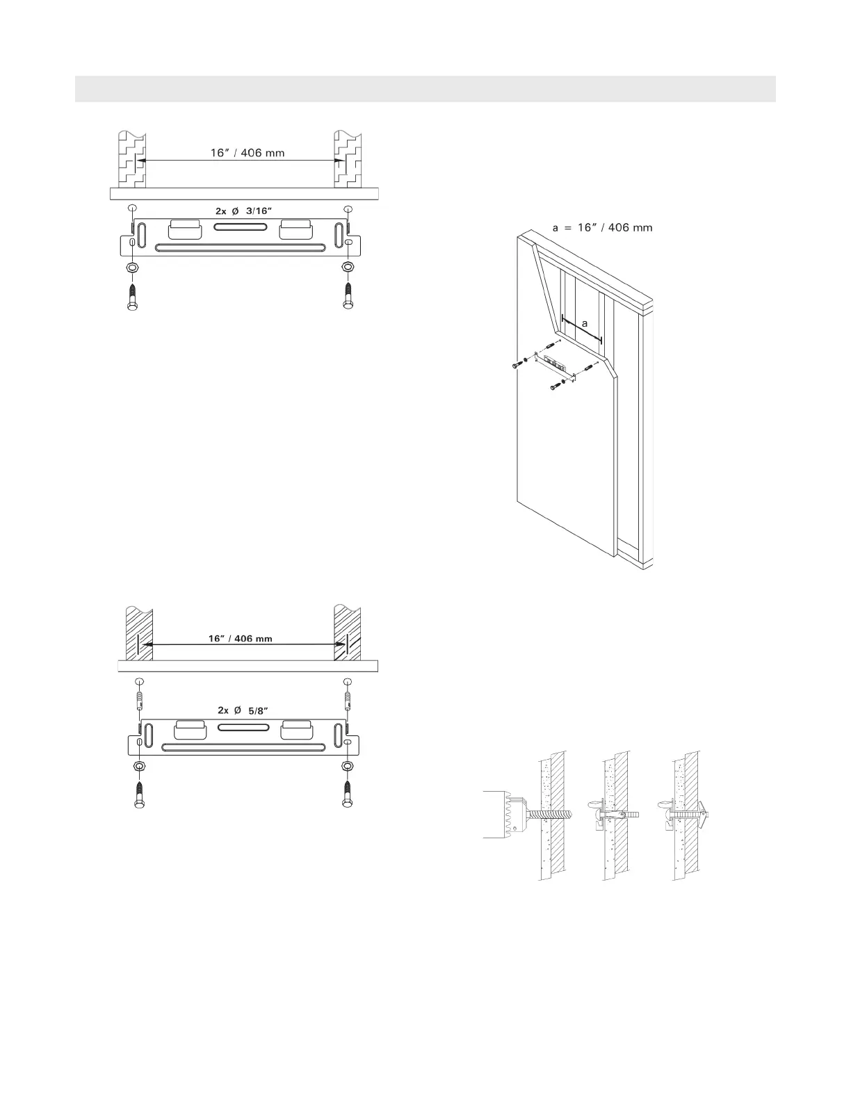 studs (supplied). Secure with bolts to metal studs as