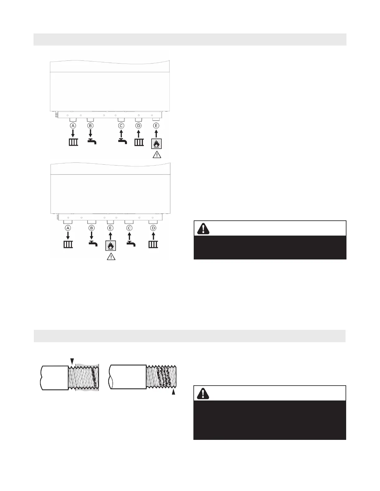 fittings or piping onto the boiler connectors. Use