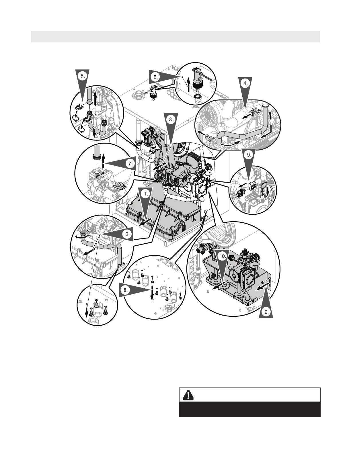 6. Pull off the clips. Push the supply pipe upwards.