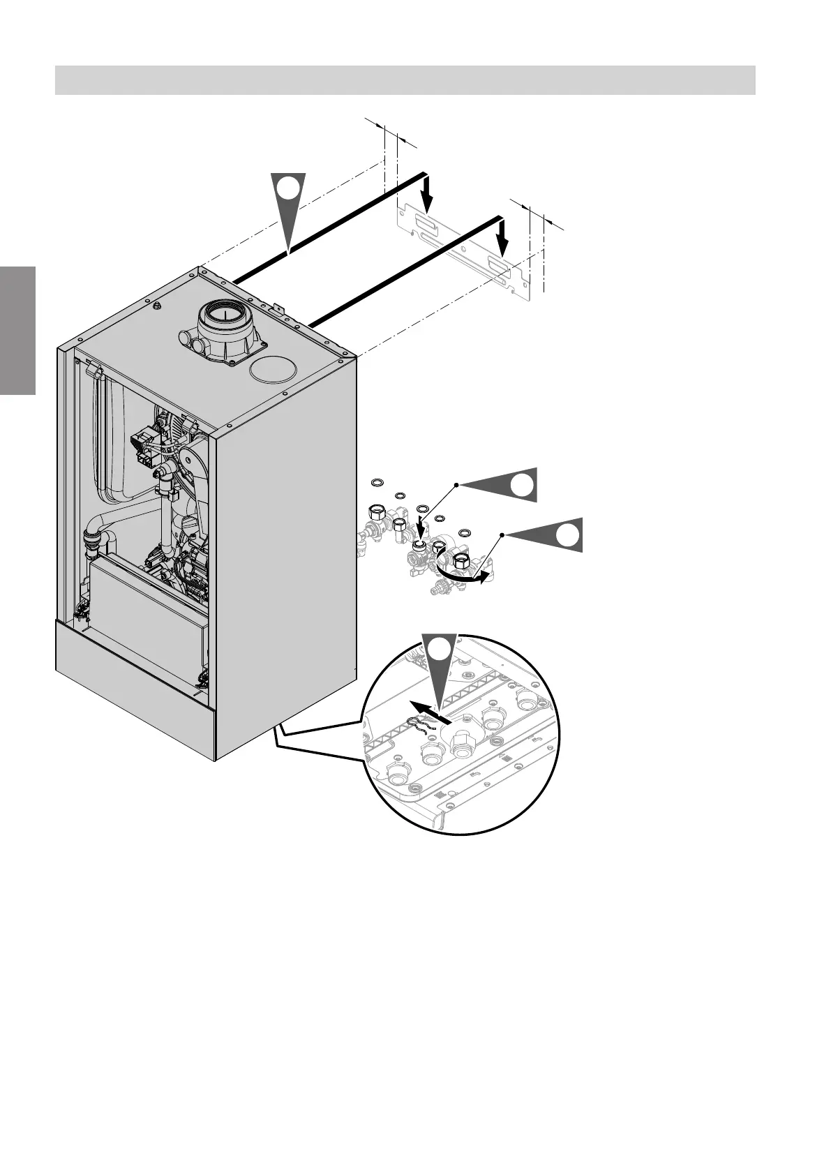 1. Replace gaskets. Fit valves and gas shut-off valve.