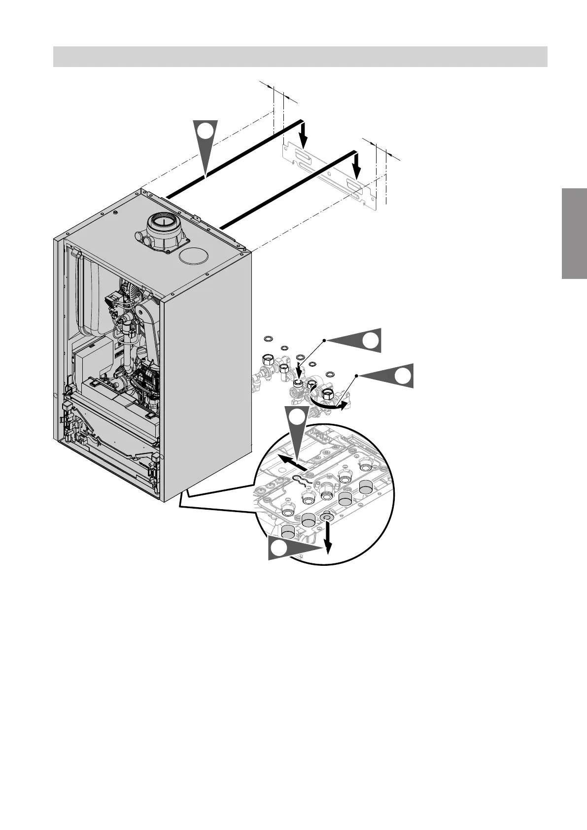 2. Replace gaskets. Fit valves and gas shut-off valve.