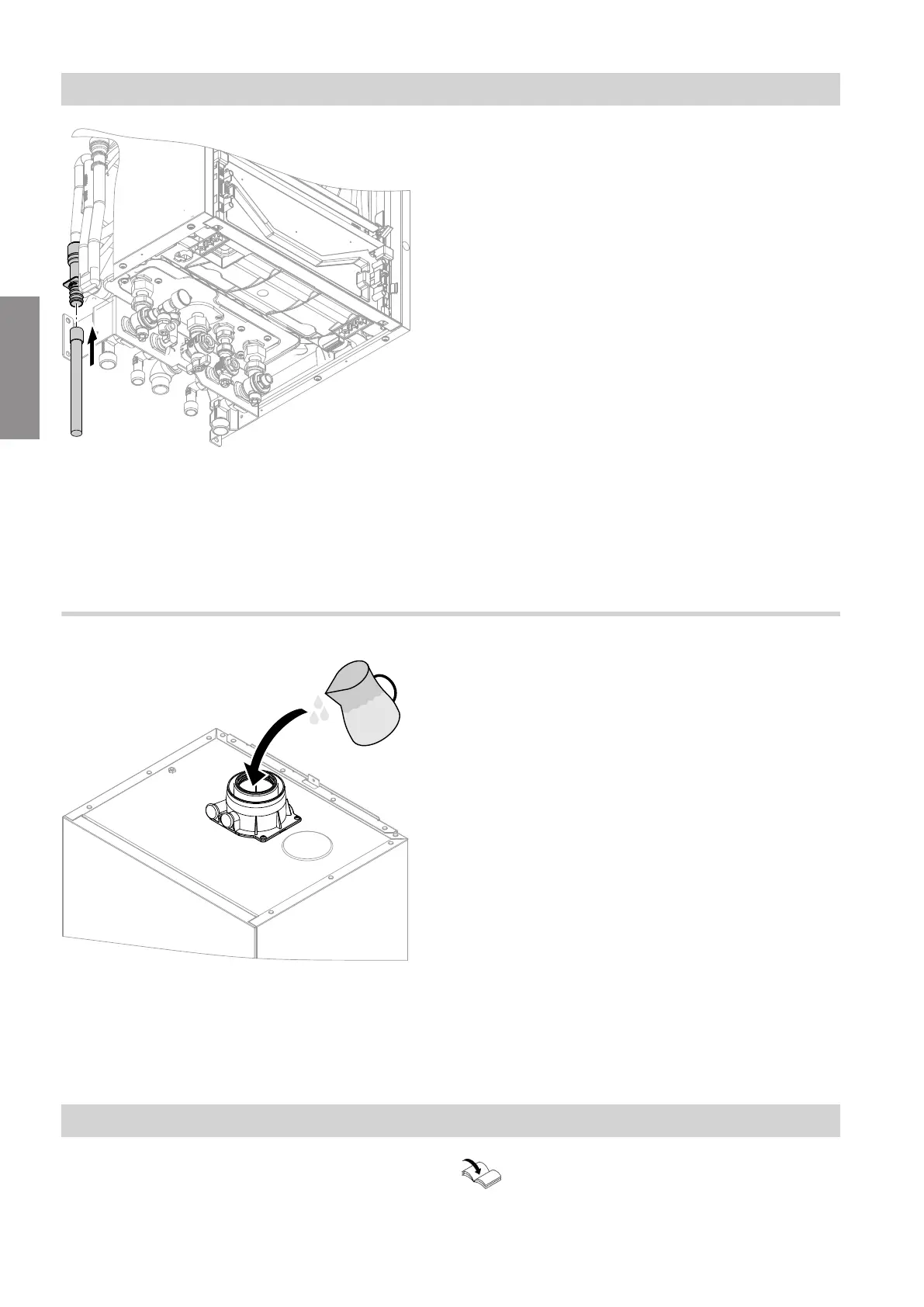Pour at least 0.3 l of water into the flue gas connection.