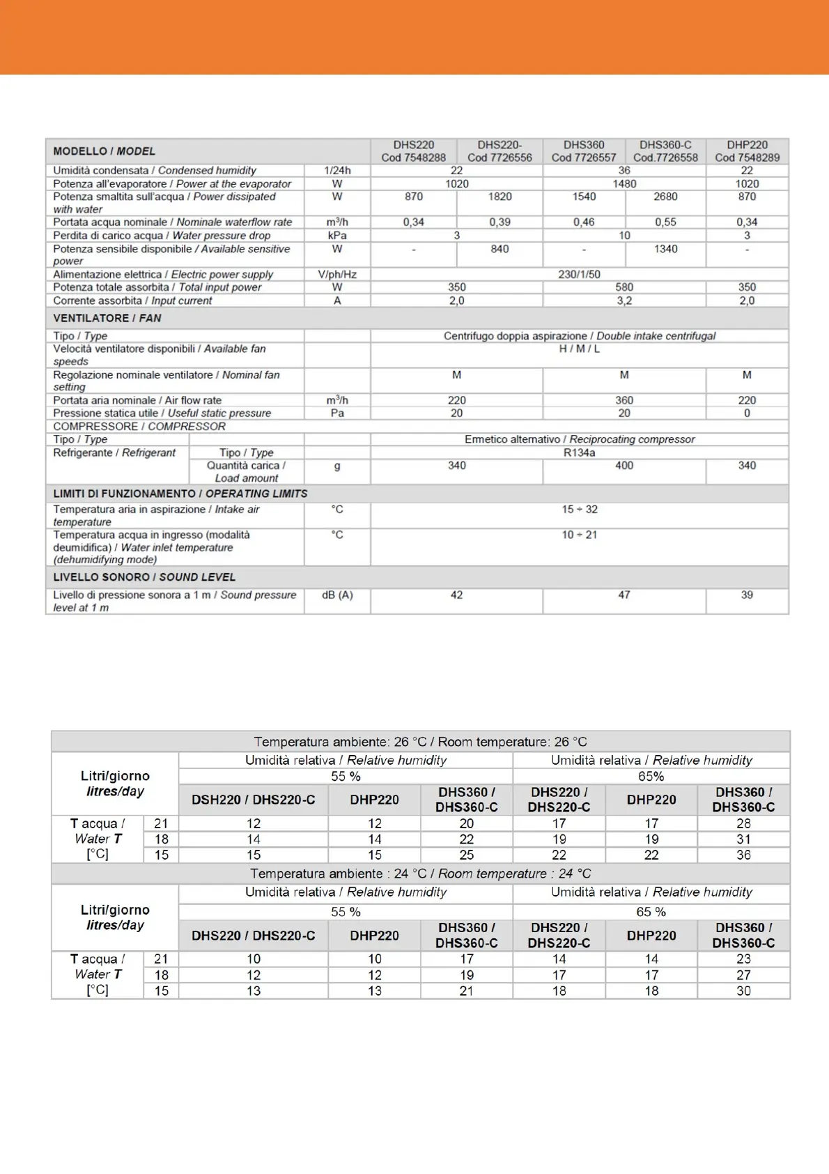 aria ambiente: 26°C BS, UR 65% ; temperatura acqua ingresso 15°C