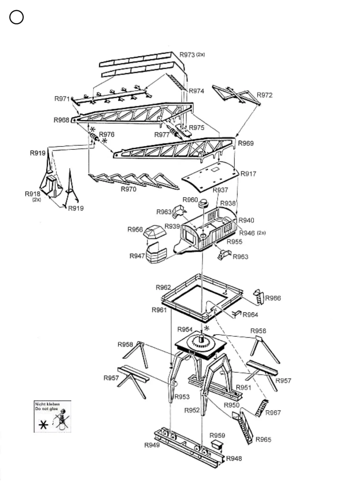 Möchten Sie das Modell von innen beleuchten, verwenden Sie bitte die Viessmann Art.-Nr. 6832 Hausbeleuchtungssockel mit Glühlampe E5,5, klar.