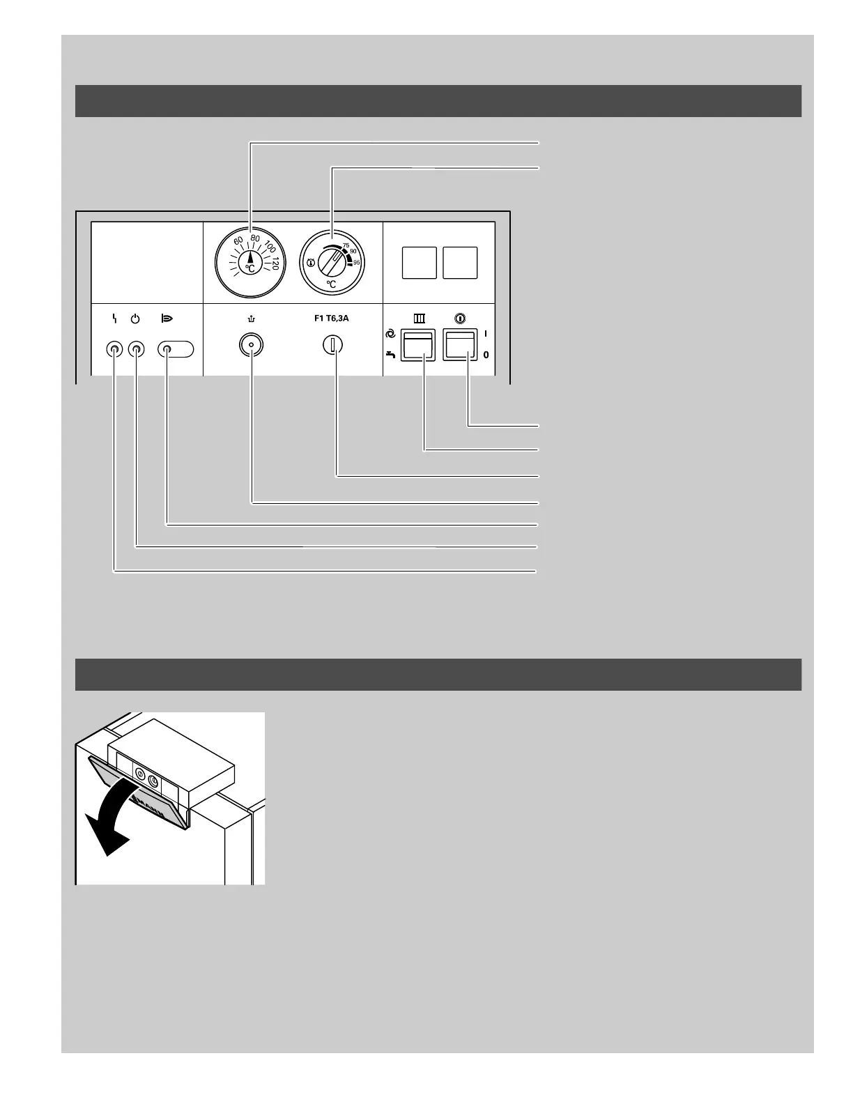 The c ontrol is located behind the flip-down cover.