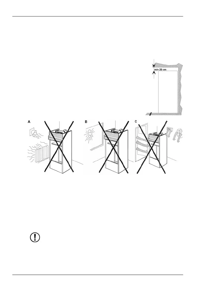 Det skal være en klaring på minst 20 cm over kjøleskapet.