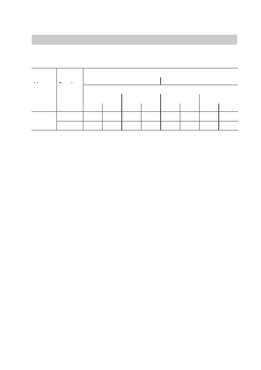 Standard values for burner settings (cont.)