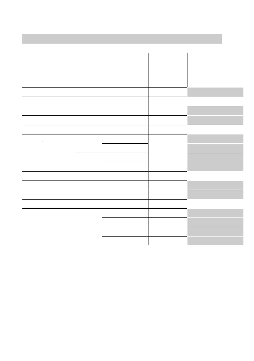 see table on