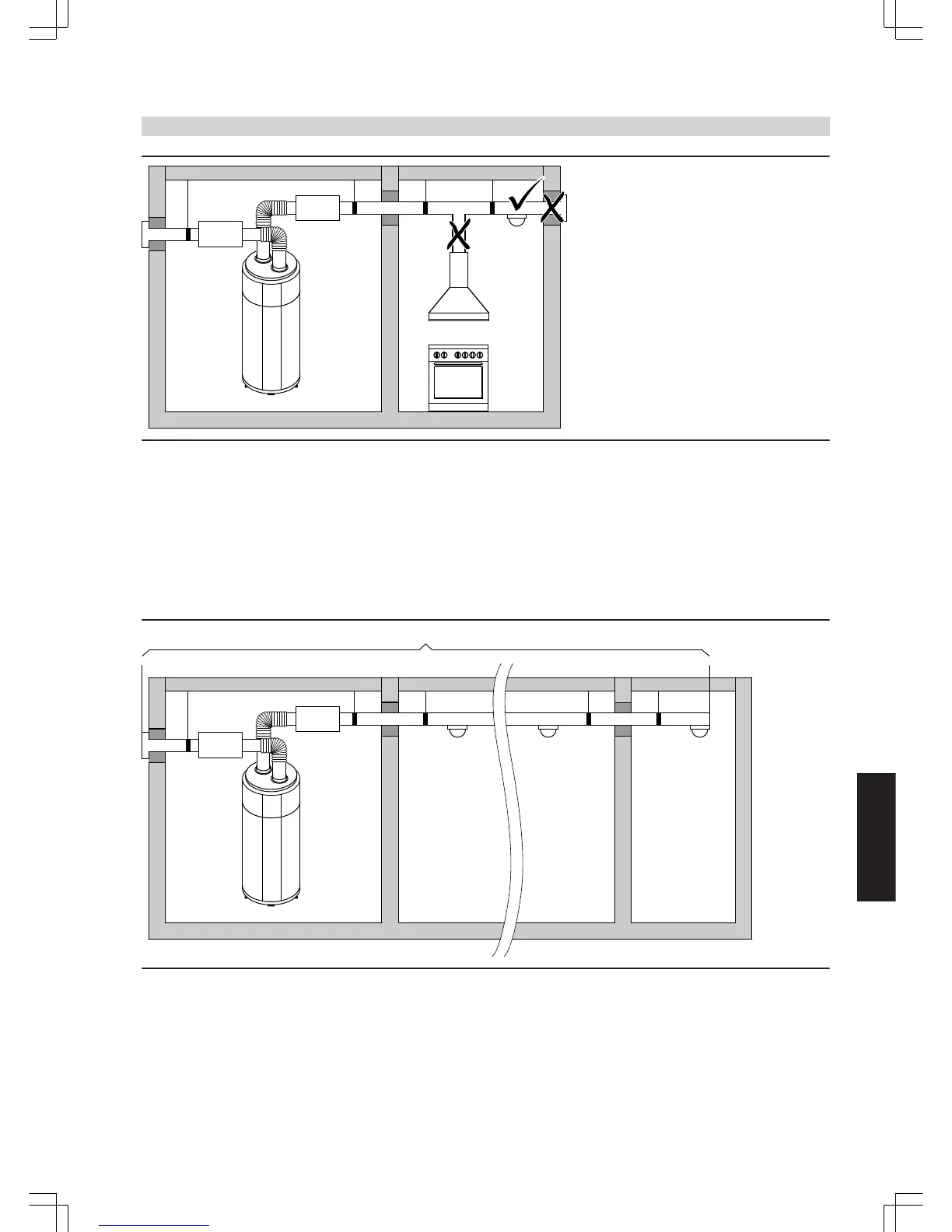 ■ Insulate extract air lines where they run through unheated rooms.