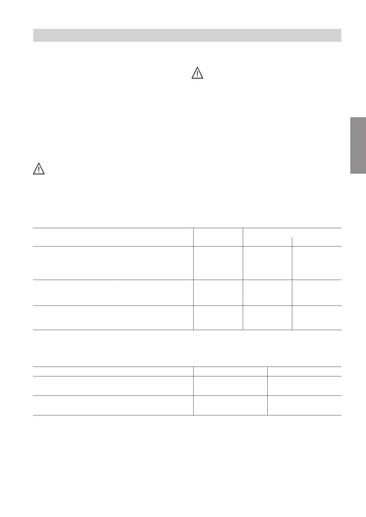 following tables.