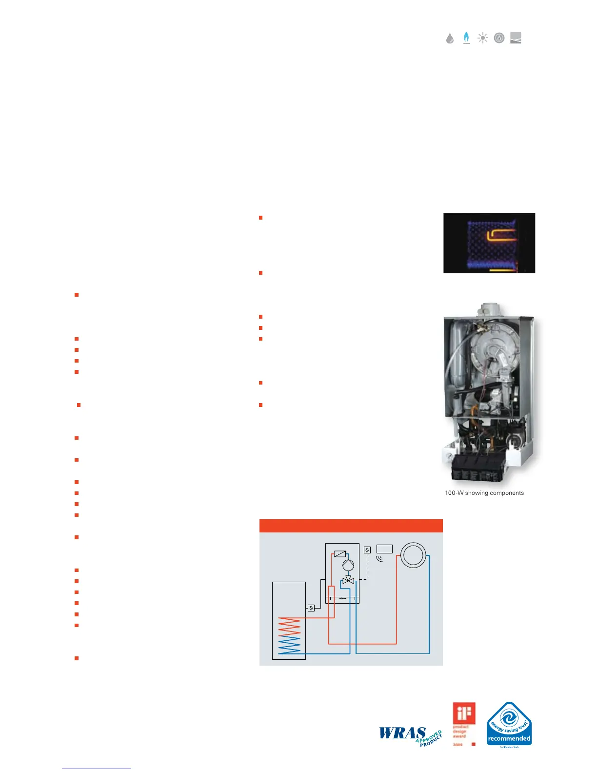 Wall mounted gas fired condensing system boiler, with modulating MatriX cylinder