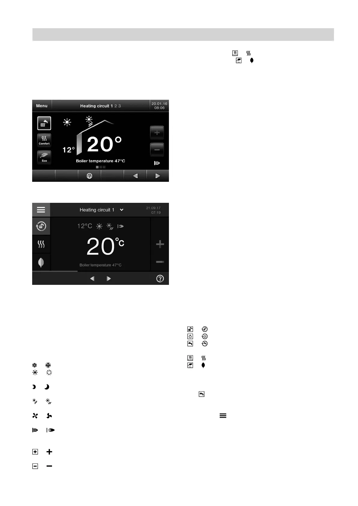 " Heating circuit 1 2 3" Selects the heating circuit.