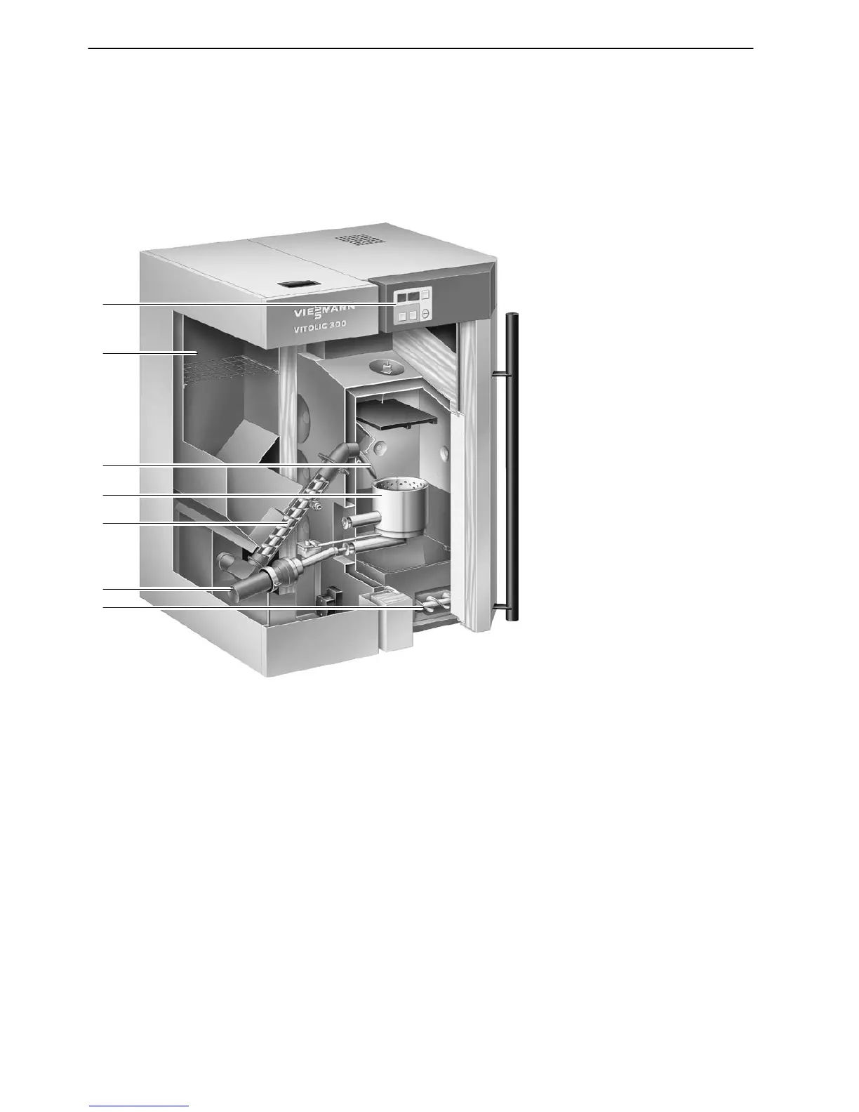 pellet feeder (l.h. side of the boiler) and a