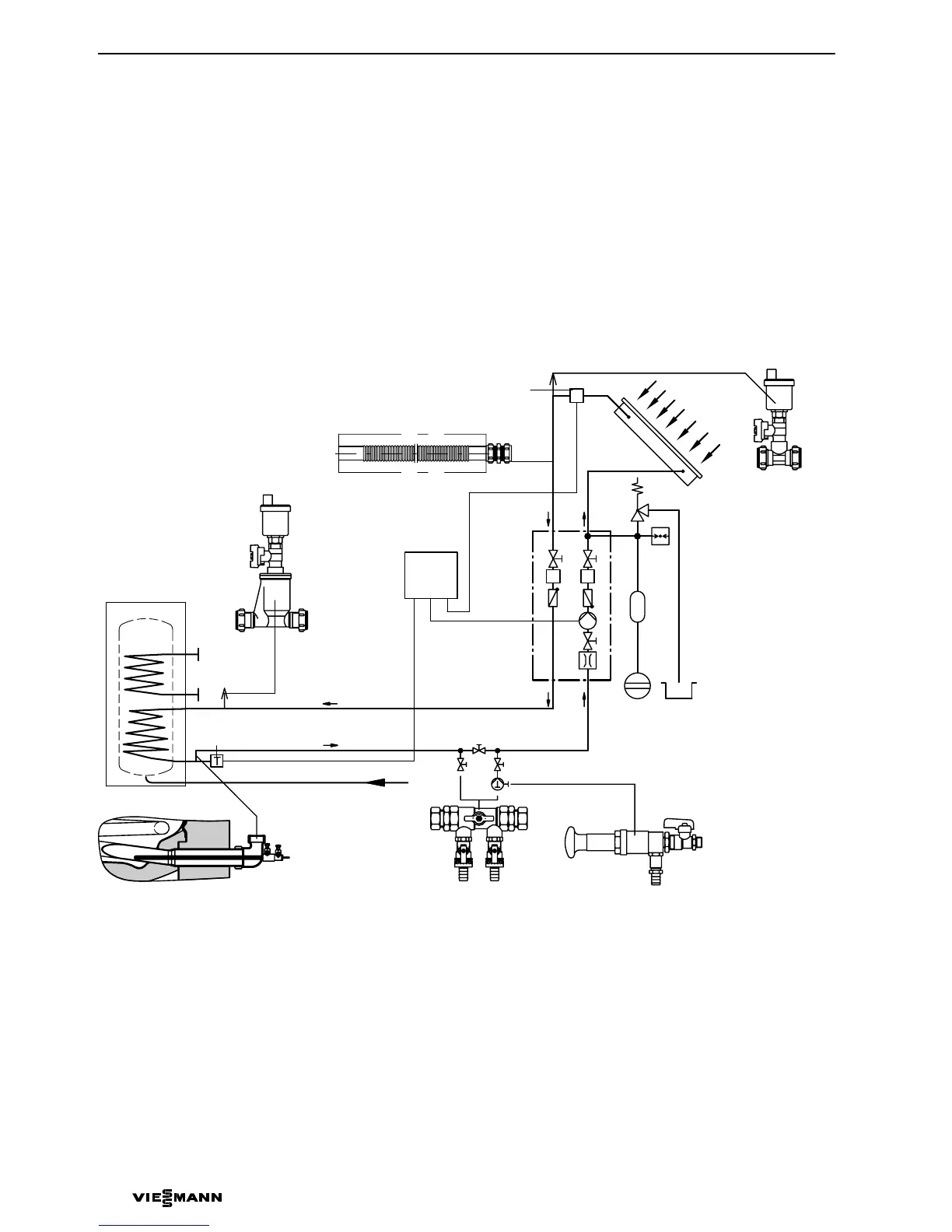 Install at least one air vent valve (quick−acting air vent valve or a manual vent valve, see page58) at the highest point of the system.