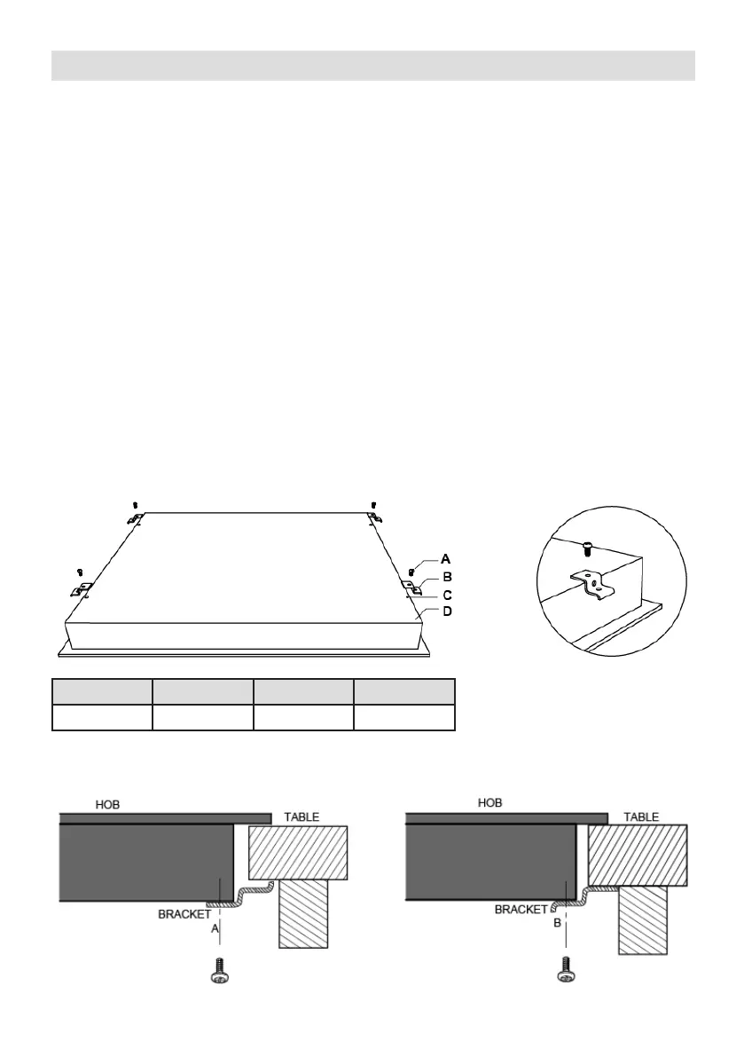 von vier Halterungen an den Boden des Induktionskochfelds an der Arbeitsplatte